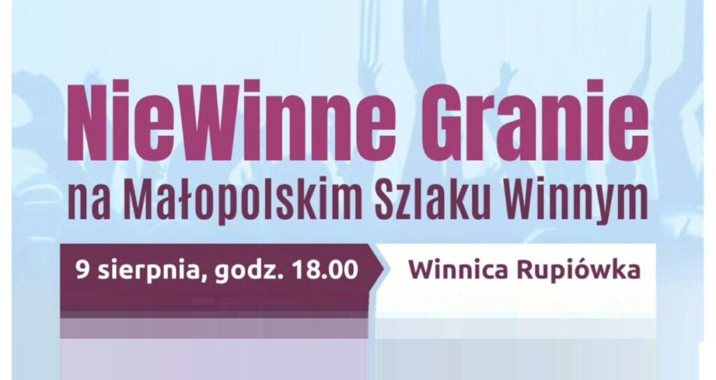 NieWinne Granie na Małopolskim Szlaku Winnym to kolejna nasza propozycja w tym sezonie dla naszych wiernych enoturystów !!! Zapraszamy także rowerzystów… 9 sierpnia o godz.18.00 rozpocznie się muzyczny wieczór w Winnicy Rupiówka @winnicarupiowka. Zagra dla nas @aneta_ta88 oraz zaśpiewa @aleksandraczop_music O Małopolskim Szlaku Winnym opowie enolog, przedstawiciel Polskiego Instytutu Winorośli i Wina Wojciech Bosak. Jak …